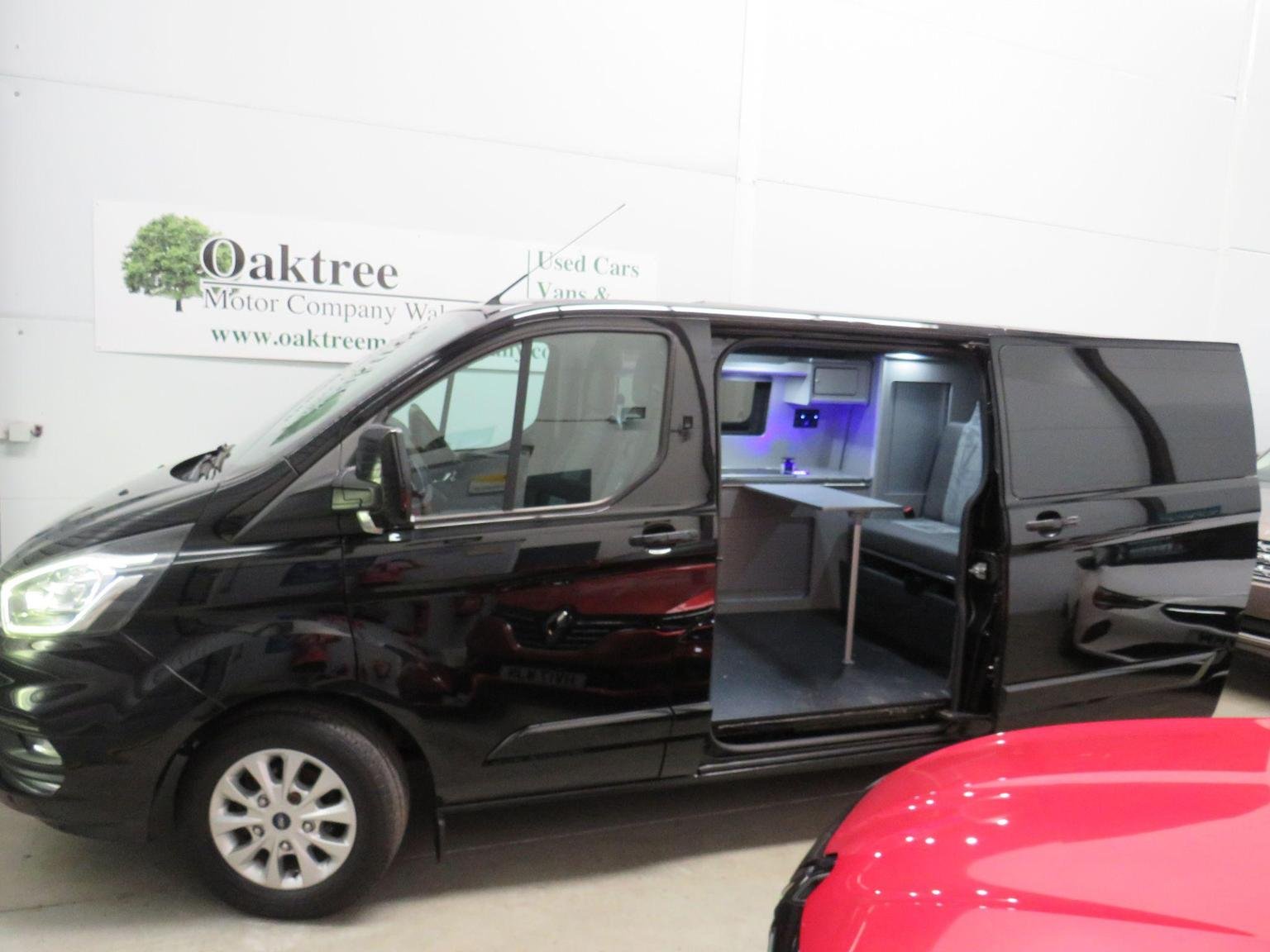 Here we have a stunning Ford Transit Custom Camper-day Van-Motorhome with full service history including the wet belt replacement, the Spec is as follows, Half Leather Half Alcantara Seats, Heated Front Seats, Air Conditioning, Parking Sensors Front & Rear, Quick Clear Heated Front Screen, Auto Lights, Drl's, Rain Sensor, Front Fog Lamps, Electric Folding Mirrors, Electric Windows, Remote Central Locking, Alloys, The Camper Conversion Consists of the following, Rock & Roll Bed with Certificate, Swivel Front Passenger Seat with certificate, Sink & Gas Hob, Fridge Freezer, Spot Lights, Sockets, USB's, Solar Panel, Split Charge System, Leisure Battery, 240V Hook Up, Table, Illuminated Cup Holder, Lots of Storage, Fresh & Waist Water Containers, Side Windows ( Drivers Opening), Privacy Glass in the rear, Blinds, Full Service History with the Wet Internal Cambelt Has also been replaced, www.oaktreemotorcompany.com